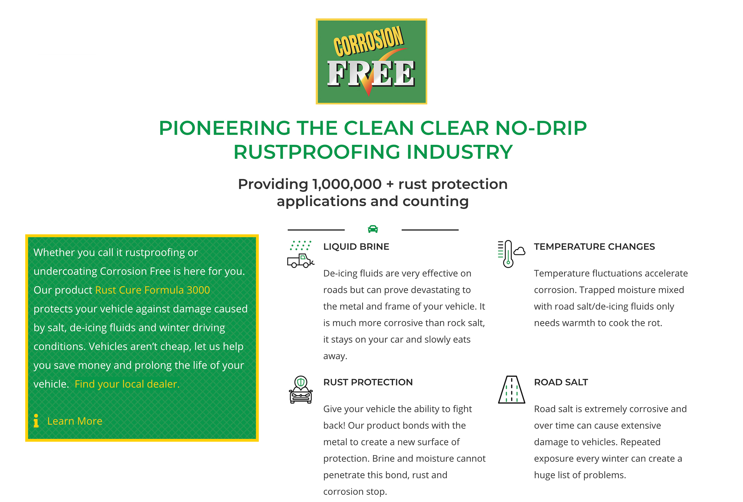 When it comes to Protecting your vehicle from rust & decay you need a product that really works. Corrosion FREE protects your vehicle against damage caused by salt, liquid de-icing and winter driving conditions.