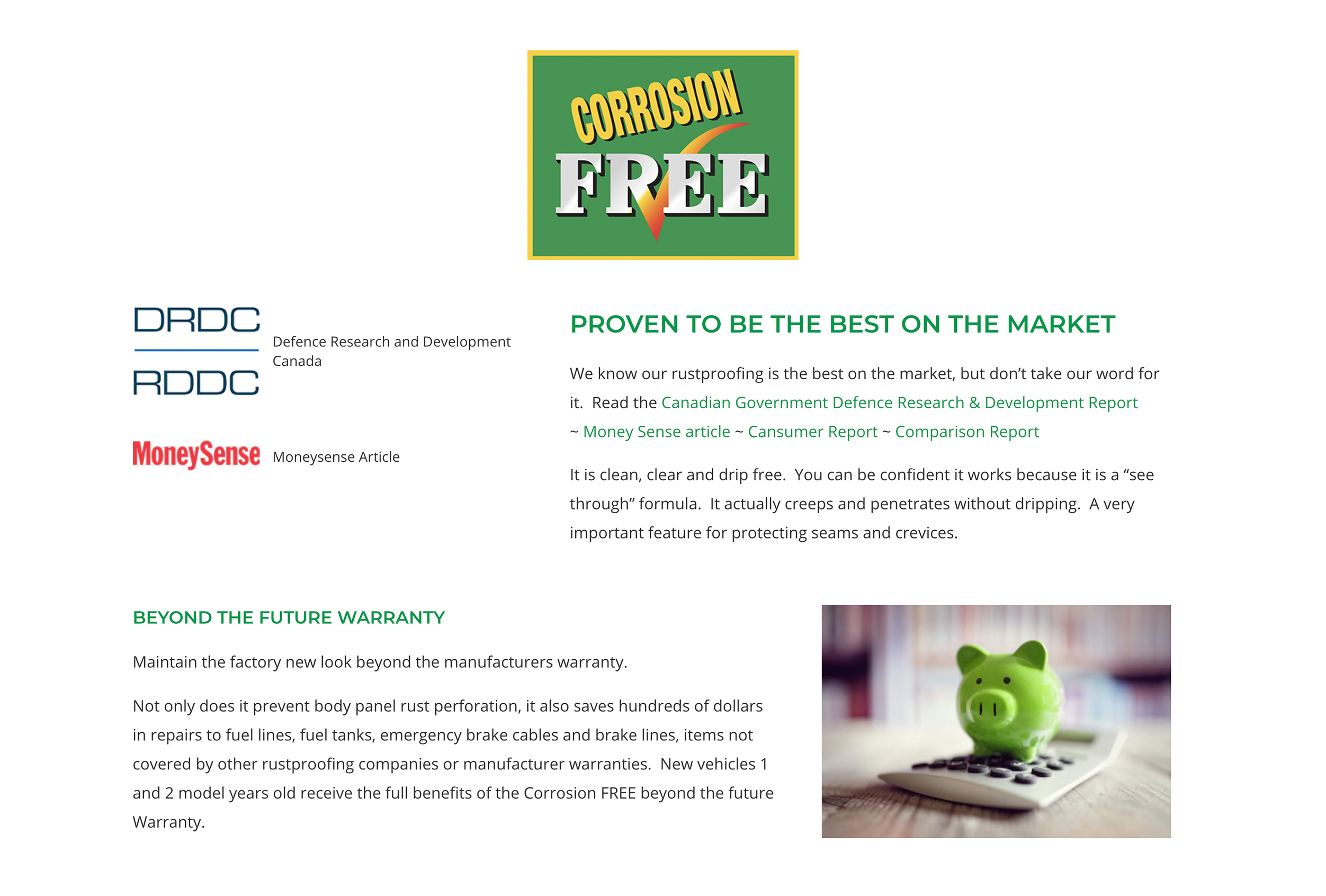 Corrosion Free Rustproofing is available at multiple locations across Canada