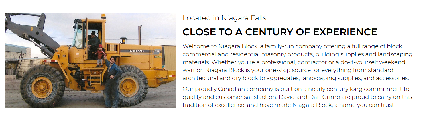 Our proudly Canadian company is built on a nearly century long commitment to quality and customer satisfaction. David and Dan Grimo are proud to carry on this tradition of excellence, and have made Niagara Block, a name you can trust!